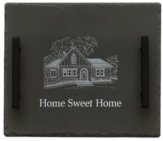 Custom Home Engraved Gift Bundle – Slate Charcuterie Board, Coaster Set & Hanging Sign (Save 15%)