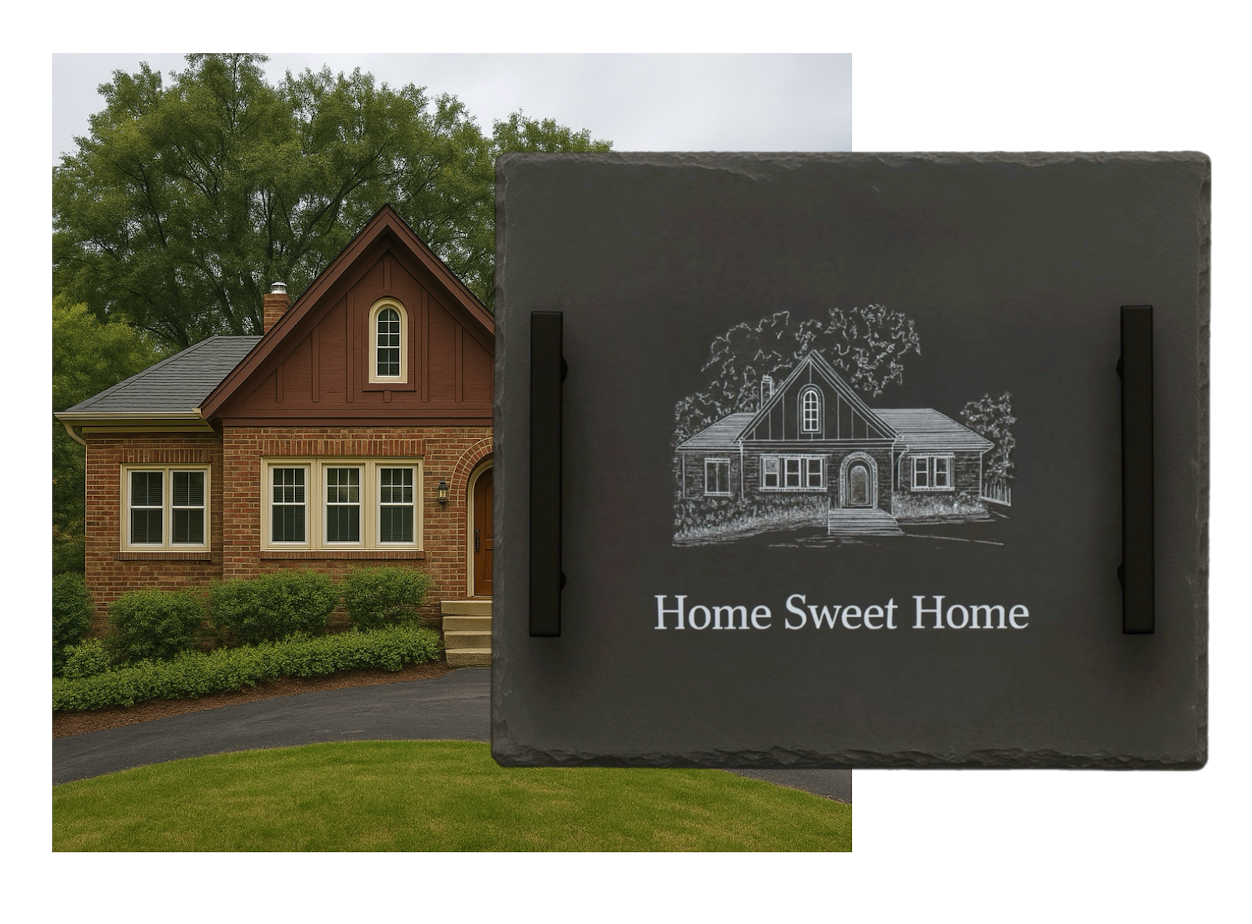 Turn a favorite house photo into a timeless, laser-engraved slate board. Perfect for housewarmings, anniversaries, realtor gifts, and “Home Sweet Home” decor.
